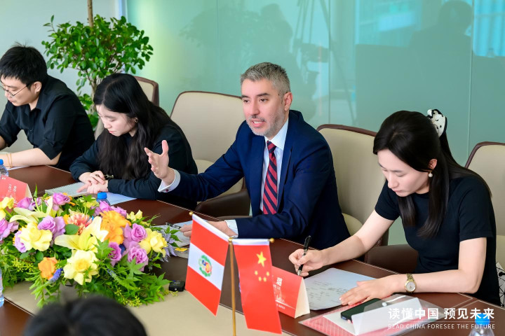 8月14日,值建交54周年之际,东方星耀集团成功举办“读懂中国,预见未来”暨“一带一路”中秘合作交流座谈会。秘鲁驻华使馆代表团,由临时代办、公使贡萨洛·塔拉韦拉率领,应邀莅临。双方高层领导及多领域优秀企业家代表汇聚一堂,围绕两国在文化、数字经济、能源、商业航天等领域的产业合作前景进行了深入交流。