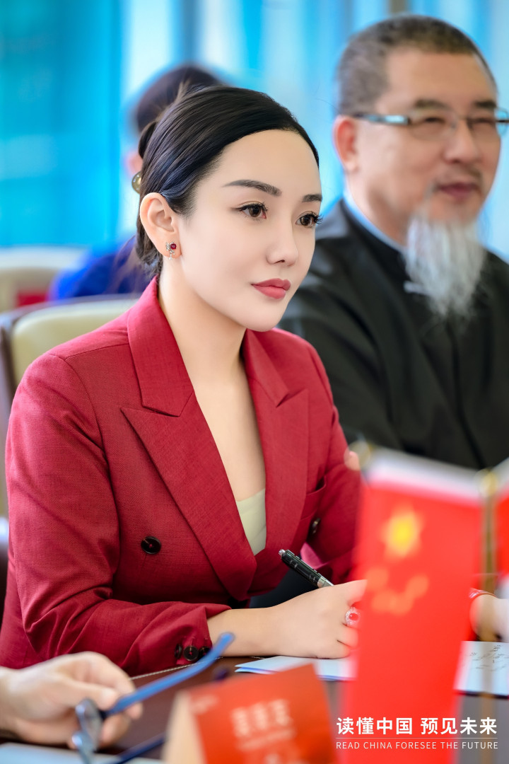 于懿兰女士作为东方星耀集团创始人,对秘鲁驻华大使临时代办、公使贡萨洛·塔拉韦拉及外交人员的到来表示热烈欢迎。她介绍了东方星耀集团是赋能全球企业家及企业发展的智慧平台,积极响应“一带一路”倡议,助力民营企业全球化发展。