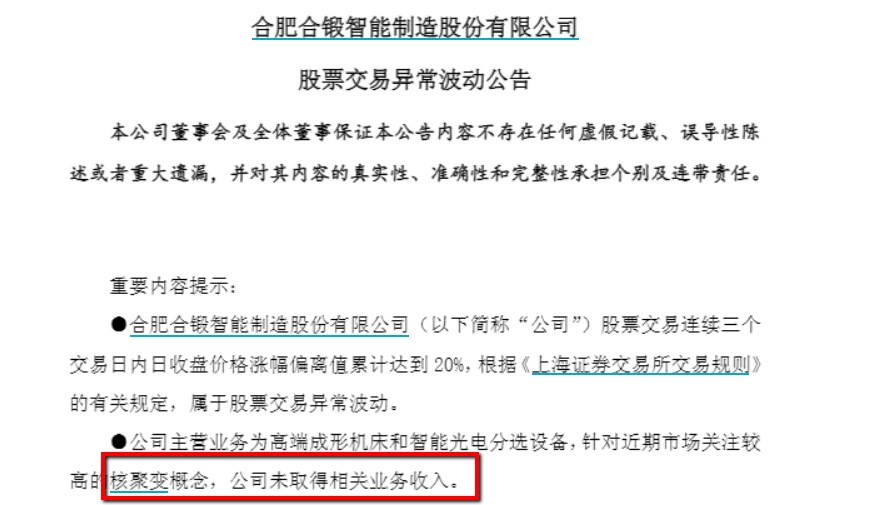 合锻智能本身是以高端成形机床和智能分选设备为主业,为客户提供包括液压机、机械压力机、色选机、聚变堆核心零部件,智能化集成控制及新材料等产品和服务的企业,然而一则公告让市场大大提升了公司的估值预期。